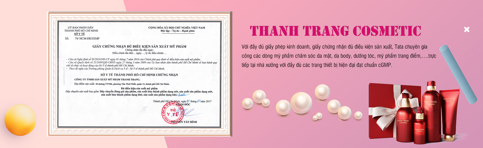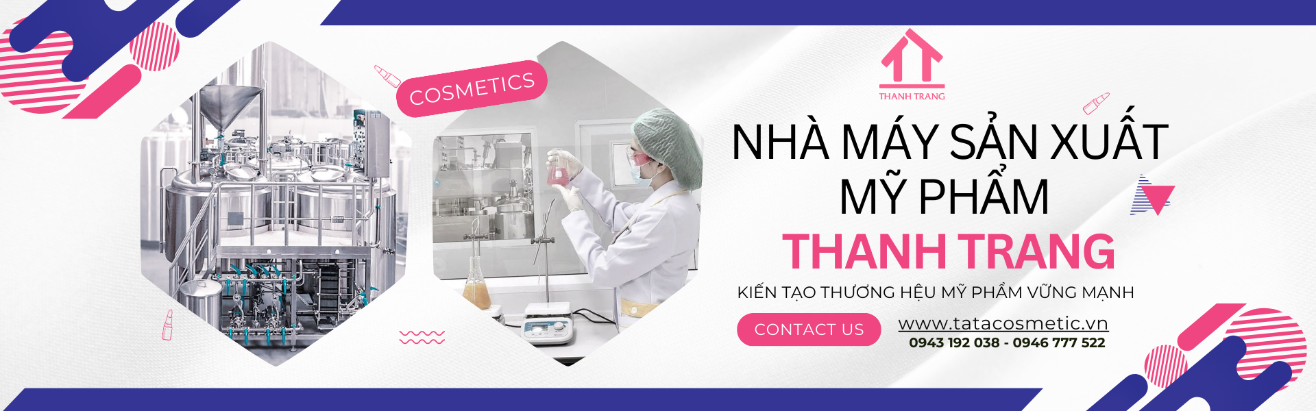 Thanh Trang Cosmetic là đơn vị chuyên gia công mỹ phẩm nổi trội tại thị trường miền Nam cũng như cả nước. Với phương châm hoạt động “Tạo dựng giá trị từ tâm” chúng tôi đã và đang đồng hành cùng hàng trăm đối tác khách hàng trên con đường xây dựng thương hiệu với các sản phẩm mỹ phẩm chất lượng, an toàn.
