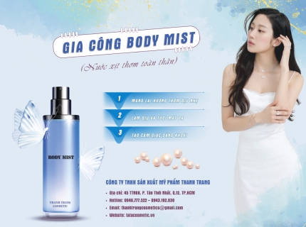Thanh Trang là Công ty gia công mỹ phẩm hội tụ đầy đủ các yêu cầu, điều kiện thực hiện dịch vụ gia công xịt khử mùi cơ thể. Sản phẩm xịt khử mùi cơ thể có thể được thiết kế đặc biệt cho nam hoặc nữ, tùy thuộc vào mong muốn và yêu cầu của khách hàng.